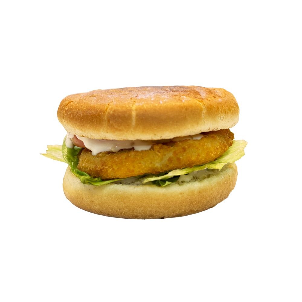 Булочка, куриная котлета, томат свежий, салат айсберг, соус фирменный