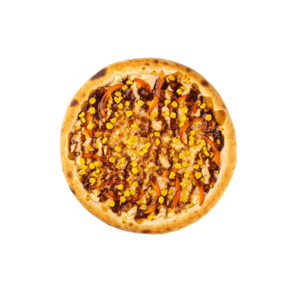 Моцарелла, мясо цыпленка, перец свежий, кукуруза консервированная, соус барбекю, соус чесночный