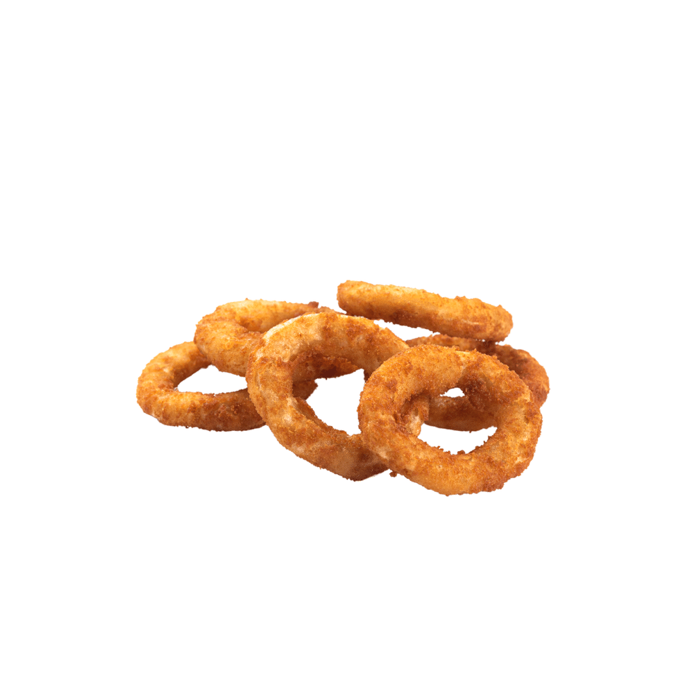 Кольца репчатого лука в легком, воздушном кляре, обжаренные до золотистого цвета.