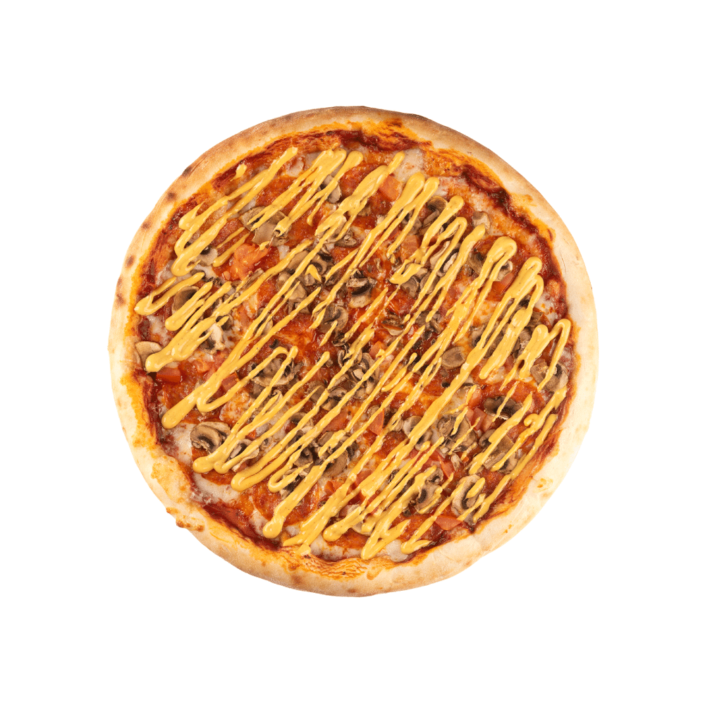 Соус томатный, моцарелла, шампиньоны, пепперони, помидор свежий, соус «Карри»