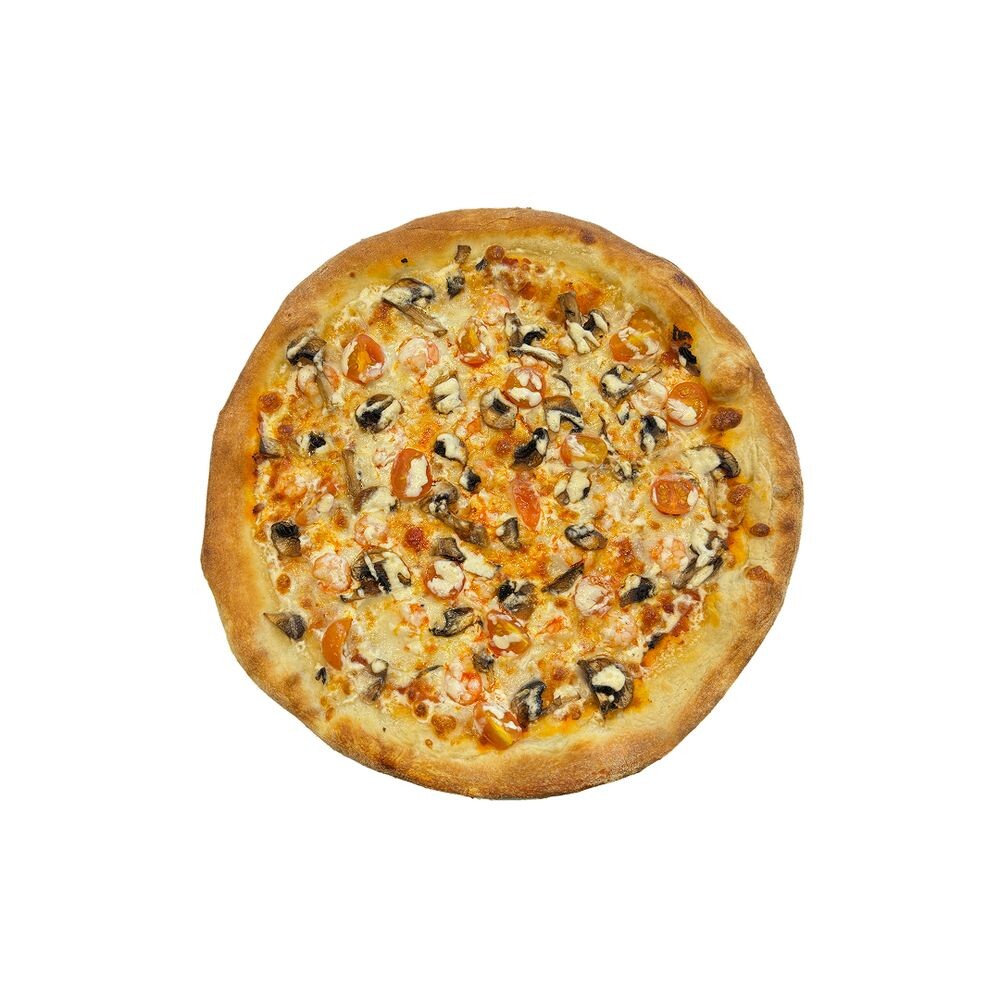Моцарелла, креветки маринованные, томат черри, шампиньоны свежие, соус том ям, сливки