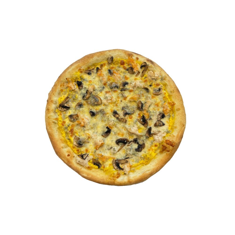 Моцарелла, курица, шампиньоны свежие, сыр с плесенью, соус сырный